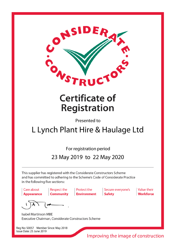 Following a validation visit Lynch was delighted to receive its new star rating certificate from the Considerate Construction Scheme.